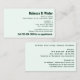 Shown here in shades of mint green, this simple, all-purpose, traditional-styled business card features a strong right-justified text layout with eye-catching bold top (name) and bottom lines. It is especially well-suited for students, freelancers, one-person small businesses or sidelines, and self-employed professionals that can include everyone from accountants, bartenders, and consultants to lawyers, notary publics, private tutors, real estate investors, therapists, web developers, and Zydeco aerobics instructors.