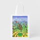 I own a lot of reusable grocery bags, but this one holds its box shape and simply stands up on its own even if there is nothing in it. Its stiffer than your regular reusable bag too, and the material is water resistant. I poured water on the exterior and it didn't penetrate inside to the other side. I'm buying a couple more. Wish I knew how durable these bags were or I would have purchased a few more with my initial order. I also like how it folds and buttons up when not in use, making it easy to put into a handbag or luggage. I haven't used this bag yet, as I purchased it for travel use, like when you're at the airport and need to small sturdy bag to place any airport purchases in, like food, souvenirs etc. I can tell you when you first see this bag, it looks very cheap, but after closer inspection of the material and the seams its a very sturdy reusable bag. I tested it out by putting some really heavy objects inside and I could not observe any stress to the bag at all. Another thing I like about it, is the fact the medium size that this is makes it easy to just carry it in your hand without the bottom of the bag scraping the ground, like most other bags do when you're short. That alone, deserves 5 stars. I just wish there were more colors to choose from! The PDX Airport Carpet printing looks just like the photo, and using this bag during travel might be a conversation piece when/if a native from Oregon happens to see it.
