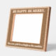 A timeless wooden frame engraved with the uplifting greetings and message “Be Happy. Be Merry...… May your spirit as bright as the sunshine” The design features a repeating diamond shape pattern that adds a touch of festive elegance. A perfect gift for your loved ones or displaying your favorite holiday photo and elevating your seasonal decor.
