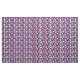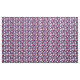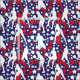Blue, red and white pattern with white and red pickleball players' silhouettes on starry blue background.