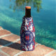 Bottle cooler with red and white pickleball players on blue, starry background. Perfect as a gift for a American pickleball player. Customizable name and initial