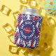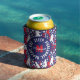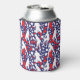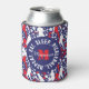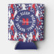 Can cooler with red and white pickleball players on blue, starry background. Perfect as a gift for a American pickleball player. Customizable name and initial