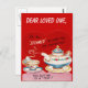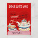 This postcard features a vintage valentine image, with a teapot and a cup of tea. The text reads, I'm all steamed up over you valentine-you suit me to a tea!" The background color and "Dear Loved One" text can be customized as desired.
