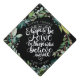 Super cute cap topper with Original calligraphy by Joy Kelley on a black background adorned with watercolor flowers. Personalize with your name and class year.
