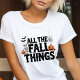Embrace the spooky season with this "All the Fall Things" funny Halloween shirt! Featuring playful pumpkins, a cute skeleton, and spooky bats, this tri-blend shirt is perfect for autumn lovers. Whether you're getting ready for a fall festival or simply enjoying the cozy vibes of the season, this Halloween shirt is the perfect mix of cute and spooky.