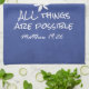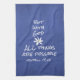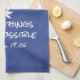 But with God, all things are possible bible verse kitchen towels in deep blue with white typography and single white flower accent. KJV Matthew 19.26