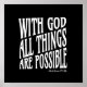This dynamic and uplifting design features the powerful Bible verse "With God, all things are possible," from Matthew 19:26. The bold, vintage-style typography in striking white against a black background gives it a timeless and inspirational vibe. It's perfect for anyone seeking daily encouragement or wanting to display their faith proudly through home decor, apparel, or personal accessories. This graphic exudes confidence, reminding us that with faith, anything can be achieved.