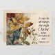 Inspirational quote scripture flat card depicts a nature botanical design with beautiful fall gold, burnt orange and green leaves on a tan background. It features an encouraging Bible Verse Philippians 4:13, "I can do all things through Christ who strengthens me." The greeting, prayer can be personalized or deleted for a hand written message.