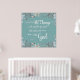 Poster with distressed white typography on textured aqua background surrounded by watercolor flowers, with well known verse from Romans 8:28, “… All things work together for good for those who love God…”