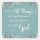 Sticker with distressed white typography on textured aqua background surrounded by watercolor flowers, with well known verse from Romans 8:28, “… All things work together for good for those who love God…”