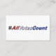 The words, All Votes Count, is written in the colors red, white, and blue, and are outlined in black, and printed on business cards. Voting tips are printed on the back. There is a black hash tag that precedes the words, All Votes Count, to encourage people to start using this phrase to help change the voting process in the United States, where all votes count. Thank you for shopping at CherylsArt on Zazzle.