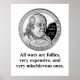 Design featuring an image of Benjamin Franklin and the quote: All wars are follies, very expensive, and very mischievous ones.