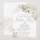 All white birthday party silver white floral invitation
