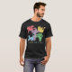 My 11 yo wore adult XL (5’7” 165#). The 8yo is small framed. She wore adult small and tied it in the back. Grandma wore adult large with long sleeve shirt underneath. Tall girl adult medium. Dark haired male adult large. Good quality dark Heather gray, Gildan brand shirt. -it was next up from basic choice and cost about $20 per shirt. Not too thick or thin. Washed and dried well, no major shrinkage. Not see-through. Can wear a bra under it fine. Screen print is just as shown and well done, front and back.
