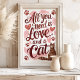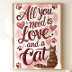 Celebrate the unconditional love and joy that cats bring into our lives with this heartwarming wall art. Featuring a playful quote in charming typography and adorned with adorable paw prints and hearts, this print is a purr-fect addition to any cat lover's home.