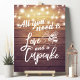 All You Need is Love and a Cupcake Wedding Party Decor Sign Poster Templates - Lovely Couple Cupcakes and String Lights on Rustic Wood Background.
