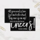 In a casual, modern handwritten script font, I created a graphic overlay that reads, "All you need is love. Love and a free drink. This one is on us!" On the back, in the same pretty type, the graphic overlay reads "Cheers!" Template fields at the bottom were set up using the words "Good for One Free Adult Beverage", on the front, and holding a space for your names on the back. *****PLEASE NOTE that the graphic depicting "Cheers!" was left quite large; I've intentionally allowed the image's text to run outside the "safe" lines. Please note that this was a conscious design decision but if you're concerned about the potential that the text could be cut off a bit in production, please feel free to click for further editing and simply reduce the size of this graphic. Alternately you may certainly reach out to me for assistance! All text is white and the editable background is black which can be changed to any color you wish. After the seriousness of your special event, some will appreciate the humor of a casual, lighthearted, funny drink coupon. // 62 // Designed by Melody Watson for Paper Muserie.