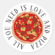 All you need is love and pizza round stickers. Cute design with custom slogan. Modern round stickers personalized with your text. Make your own stickers for party. Fun stickers and sealers for wedding, Birthday and more.