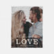 Modern chic photo fleece blanket with hand-lettered script and modern typography reading:' All you need is Love 'alongside your custom names. Personalize with your favorite photo and names.