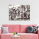 Very impressive product! The canvas is sturdily made. It features a saw tooth hanger on the back, making it easy to "try out" the canvas in several rooms until I found the best location. It attracts good comments from my friends. I love it! The printing is wonderful! Colors are as bright and crisp as they appeared on the website.
