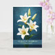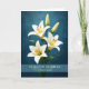 This religious Easter greeting highlights beautiful white Easter lilies arranged against a vibrant blue background that allows the flowers to stand out with clarity and grace. The front message Alleluia reflects the joyful proclamation celebrated throughout the Easter season as Christians rejoice in the Resurrection. Easter lilies have long been associated with the promise of new life and the hope of spring, making them a meaningful symbol for both Christian and Catholic Easter celebrations. The rich blue tones and classic floral imagery create an uplifting design suited for sharing faith and joy during this sacred holiday.