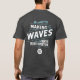 Allen Creative "Making Waves" design on back of shirt in white and light blue. Allen Creative logo and vertical text on front of shirt in upper pocket area.