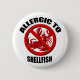 A no symbol warning with a lobster, crab, and the text 'Allergic to Shellfish' on a button. ©2014charmainepaulson