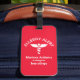 Allergy Medical Alert with persons name and list of allergies in alert red and white with the medical symbol. On the back, slip in a card with doctor's information.