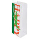 The perfect bag for that Birthday gift of wine or something tall and slender! The green classy alligator is artist, dag dart's design. He is especially great on this glossy white bag with blue and orange text.