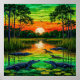 A serene tropical sunset scene with alligators resting by a river surrounded by lush greenery, expressive clouds, and warm colors conveying nature's tranquility and wild beauty.