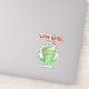 The image on this contour sticker is of a guy and girl alligator holding tight to each other, with red hearts floating above them. The red text above the image says "Love Bites"