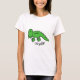 A green stick figure alligator on Alligator T-shirts, mugs, cards, stickers, tote bags, alligator magnets, buttons, postage stamps and other alligator apparel and gifts.