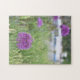 Puzzle features an original photograph of purple allium flowers in a summer garden. Photographed in Stratford Upon Avon, Warwickshire, United Kingdom.