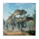 Three allosauruses kick up dust as they hunt along a rocky track created by the passage of large dinosaurs. Deep green plants line the sides of the trail" "while a conifer forest dominates the background. Overhead clouds drift through the blue prehistoric skies. The allosaurus was a theropod dinosaur from the Jurrassic period. Some paleontologists theorize that Allosaurs were pack hunters" "so I though it might be fun to depict a trio of the creatures on the hunt for this latest addition to my paleoart series.