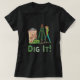 Allotment gardening design shows keen gardener digging on an allotment vegetable patch, tending a community garden and looking after their plot of land. There are vegetables growing and a shed in the background. For people who grow their own and dig the results.