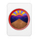 This geology item features a sketch of an alluvial fan as a round, colorful logo. The circular design includes a low sun rising over a mountain range with a large alluvial fan. Most noticeable in the desert, an alluvial fan is a large fan-shaped pile of alluvium (sediment) that is washed out of mountains by water. This would be a great gift for your favorite sedimentologist or neotectonicist.
