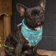 This pretty bandana showcases the beautiful painting, Almond Blossoms, which was painted by Vincent Van Gogh in 1888. It features a teal blue toned background with white toned flowering blossoms.