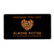 Loveheart made of almonds with customizable product name and who made it.