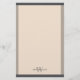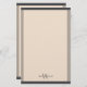 Personalized stationery with clean borders in two shades of warm gray with your name atop your initial against an almond beige background. Beige and gray stationery personalized with your name and initial. Monogrammed stationery for him with a modern color block border design in neutral colors, printed with his name and initial at the bottom.