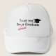 Hilarious graduation cap for soon-to-be grads! [Alt-text: Black baseball cap with embroidered 'Trust Me, I’m Almost a Graduate' text in gold thread.] Structured fit. One-size-fits-most. Fast shipping! Perfect for grad photos or parties. Coordinates with our matching "Proud Parent" tees. A witty gift for high school/college seniors. Pair with honor cords for extra flair!