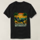 This bold and colorful t-shirt design shows a relaxed man in business attire stretched out in a hammock on a tropical beach, loafers kicked off, tie loosened, and a strawberry margarita resting on a small table nearby. Behind him, a vivid sunset paints the sky with brilliant reds, greens, blues, and golds, creating the perfect backdrop for the caption “Practicing for Retirement.”
