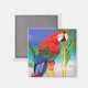 This Magnet is shown with a photo print of a pretty tropical parrot.