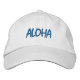 ALOHA Blue and White Embroidered cotton hat. Makes a wonderful gift for anybody who loves Hawaii! If you would prefer to have your personal text then simply select "Personalize this template" details button to enter your choice of custom text. Embroidery is also customizable to other color choices by selecting the "Edit Design" tool button. Also available is the option to select choice of hat color on the main item page.