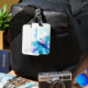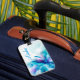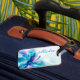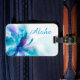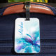 Custom luggage tag shown in a pretty blue tropical floral print.