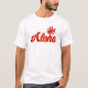 Cool cursive Aloha text design. Classic retro Hawaii design in red and orange-yellow with palm tree above the "h" in Aloha.