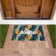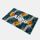 Give your guests a warm Hawaiian style welcome no matter where you live with this bright and colorful welcome mat at your front door! Sunny orange Hawaiian hibiscus flowers and fragrant leis of white plumeria meander along a backdrop tribal geometric design in deep ocean blue and aqua. Bring a touch of the islands to your home, and share the Aloha!