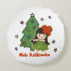 In this original cartoon, cute little hula girls bring their Aloha sprit to the holidays as they do their dance in front of a Christmas Tree. The greeting is "Mele Kalikimaka” which mean Merry Christmas in Hawaiian. This design is available on a variety of products for the home and apparel for the entire family. Our coordinate round pillows have a graphic on the front and then reverse to an allover print.