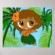 Aloha Honeys are cute little hula girls with a tropical jungle background in these fun posters for your little girls room or dorm. These original little characters bring the message of aloha and the Hawaiian spirit with their dance. Leilani in the leader of the group, as she is Hawaiian. Leanie is a true surfer girl (blond). Kali has latin roots (blue hair) and Lika (brown hair) rounds out the group with her ethnic heritage.