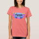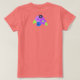 Cartoon flowers help send the message that aloha means hello! This design is available in another colorway as well. This original cartoon adorns these gals t-shirts on the front with a companion print of a cluster of flowers on the back. These designs come in several colorways.