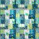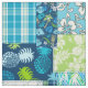 Turquoise, teal blue, navy blue, lime green and aqua colorway. Our tropical patchwork is a combination of our best selling aloha prints. This design is a perfect way to add a touch of aloha to your home decor. Palm Whisperer, Malia Hibiscus, Midnight Garden, Surf Pareau, Momona Pineapple, Makapuu Beach and some tropical plaids create a patchwork utilizing a coordinated color story. Great for that beach house, dorm room or your tiki lounge!